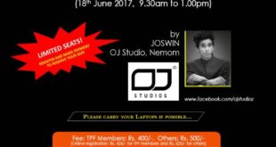 TechnoparkToday.com>> Trivandrum Photographers Forum (TPF) in association with TechnoparkToday.com organizes an informative training session on photo editing and processing using Adobe Photoshop. The workshop will be held at Malabar Hall, Parkceter, Technopark on June 18, from 9:30 to 1 pm. Renowned photo editor in the city, Joswin (OJ Sudios/OJ Fashion), will be leading the sessions. Fundamentals of photography, basic editing, …