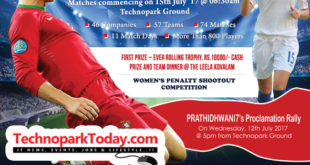 TechnoparkToday.com>> Fasten your seat belts as the Footies of Technopark are all set for the biggest Sports Extravaganza of Technopark. Prathidhwani is all set to host the 3rd edition of 7’s Football tournament in Technopark. Teams from Technopark companies can register now for the tournament. 60 teams from 55 companies participated in the last years’ tournament. The last date of …