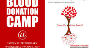 TechnoparkToday.com>> Due to huge shortage of blood in Trivandrum SCT hospital, Tejus is conducting another emergency blood donation camp at Carnical Technopark (Leela Building). The camp will be held on Wednesday, April 19 at 9:30 am to 1:30 pm. Techies are requested to participate in the blood donation event.