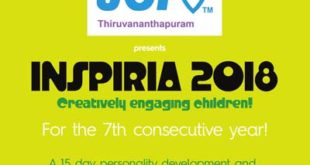 TechnoparkToday.com>> JCI Thiruvananthapuram is conducting a 15–day Personality Development and Training Workshop INSPIRIA – 2018 for students aged 12 to 17 at Nirmala Bhavan Higher Secondary School Auditorium, Kowdiar, Trivandrum from 12th April 2018 to 29th April 2018 (9.30 am to 3.45 pm). The program which has been successfully conducted for the last six years intends to add a new …