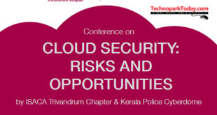TechnoparkToday.com: ISACA Trivandrum Chapter is conducting a one day conference on Cloud Security – Risk and Opportunities on 4th November 2017, at Hotel Hycinth, Trivandrum. 70 percent of the world’s businesses at least in part now, operate on the cloud according to Cloud Security Alliance(CSA). Cloud offers benefits like lower capex, lower opex, higher flexibility and ease of manageability, which …