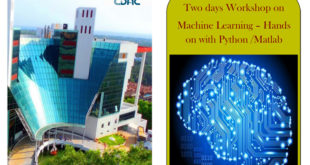 TechnoparkToday.com>> Centre for Development of Advanced Computing (C-DAC), the premier R&D organization of the Ministry of Electronics and Information Technology (MeitY), Govt. of India, for carrying out R&D in IT, Electronics and associated areas. The Knowledge Resource Centre (KRC) at CDAC Trivandrum announced a 2 – Day Workshop on Machine Learning- Hands on with Python / Matlab at C-DAC Technopark …