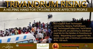 TechnoparkToday.Com>> We are all aware of the devastating effects of cyclone Ockhi on the fishermen community in Trivandrum. One of the worst affected areas is Poonthura where many families lost their bread-winners and many members still actively participating in the ongoing search and rescue efforts. As a support from Technopark community, Natana, Prathidhwani, VSC, TechnoparkToday.Com, TechFriends and Prakruthi, are planning …