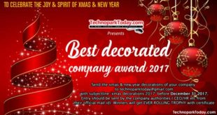TechnoparkToday.com(Dec, 2017): We are conducting the best xmas decorated company 2017 award for IT/ITES/BPO Companies in various IT parks in Kerala. ( Technopark / Infopark / Cyberpark) How to participate? send a photograph of your company decorations and send to [email protected] with ‘xmas decorations 2017‘ subject line. Since its for the organisations, the entries should be submitted by authorised officials …