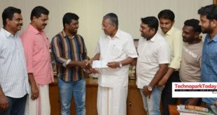 TechnoprkToday.com>> Prathidhwani, the Socio-Cultural and Welfare Organization of IT Employees handed over Rs.3,42,400/- (Rupees Three Lakhs Forty Two Thousand and Four Hundred), the Ockhi relief fund collected from IT Employees, Technopark to chief minister Pinarayi Vijayan towards CM’s Ockhi relief fund on 22nd December 2017. Prathidhwani secretary Rajeev Krishnan, executive Members Satheesh Kumar, Arundas, Pramith P, Sakthi Balan, Arun Kesavan …