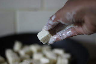 Dip the paneer in the batter and shallow fry them in a pan adding oil flipping the sides until they are golden brown. Drain it paper towel / kitchen tissue and keep it aside.