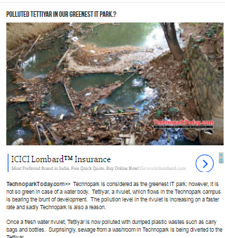 Initial environmental examination of storm water drainage- a study conducted by Thiruvananthapuram Corporation in 2012, states ‘Tettiyar thodu is running in the premises of Technopark, Kazhakuttam and is being silted up. Protection of Tettiyar thodu will prevent flooding and water logging in the surroundings of the Technopark area’.