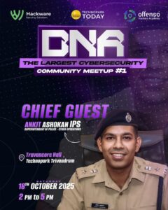Trivandrum, Oct 2025: Technopark will host DNA – The Largest Cybersecurity Meetup on October 18, …