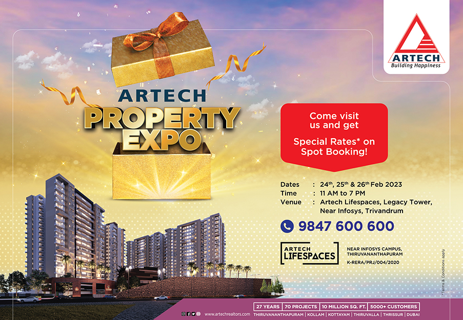 The project benefits from being close to the IT hub in Thiruvananthapuram, Techno Park, Infosys, the UST campus, and Lulu Mall. The Thiruvananthapuram Airport is about a 10-minute drive from Artech Lifespaces. The living spaces are available in 2 BHK + Study, 3 BHK, 3 BHK + Study and 4 BHK options. Artech Lifespaces also presents a great investment opportunity in the capital city. You can also chose from other premium addresses from Artech Realtors in Trivandrum like Artech Diamond Enclave at Vellayambalam, Artech Rainforest at Jawahar Nagar, Artech Metropolis at Mannanthala, and Artech Panorama at Sasthamangalam.