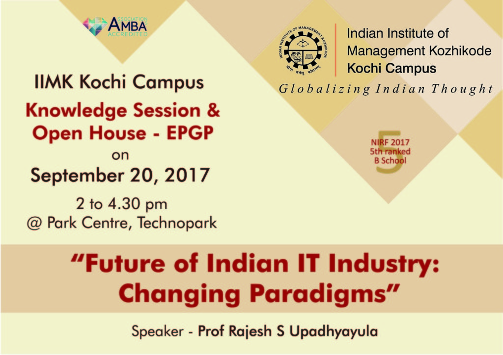 Technoparktoday.com>   EPGP IIMK Kochi Campus is organizing a knowledge Session and Open House at park center here at Technopark Trivandrum on September 20 at 2 – 4:30PM.