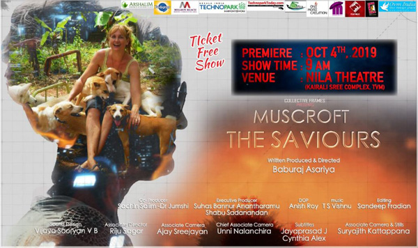 TechnoparkToday.com>> Techie director Baburaj Asariya’s latest work based on the life of a British couple who works for the stray dogs in God’s own country -“Muscroft the saviours” is all set for its release. Produced under Collective Frames, it will be premiering on the World Animal Day-Oct 4th 9 am at Nila Theater Trivandrum. It’s a ticket free show and all are welcome to enjoy this experience with the entire cast and crew.