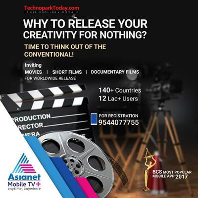 TechnoparkToday.com>> Asianet Satellite communication in association with Collective Frames is providing a legacy opportunity for the public to introduce their short film in a wide range of audience across 140 plus countries and more than 12 lakhs of users will be now viewing your threshold movie enthusiastically.