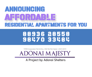TechnoparkToday.com: Located on one of the most preferred destinations in the realty map, ‘Adonai Majesty’, a five-floor single tower residential project is an epitome of comfort living at an affordable rate. A project by Adonai Shelters, the ‘Adonai Majesty’ located at Convent Lane, Nalanchira, has 15 apartments.